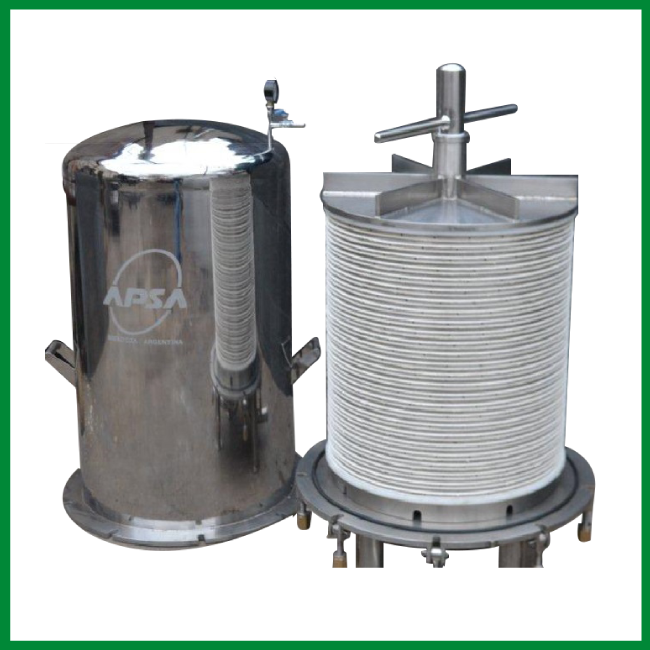 Filtros para aceite de oliva extra virgen y otros. Sistema a placas verticales con limpieza por vibración.